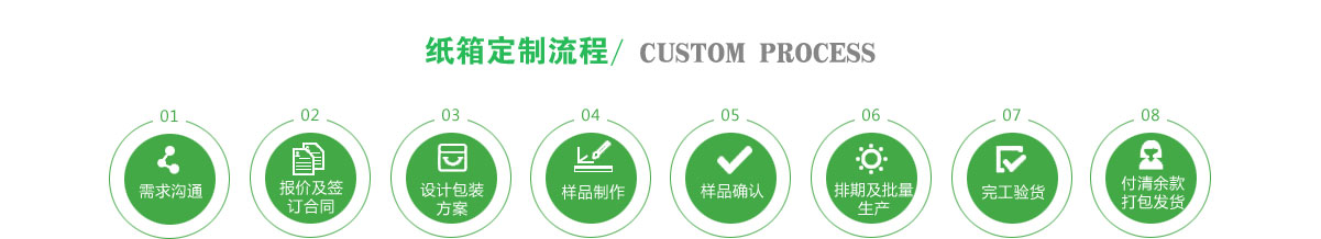 全自动进口机器机械化生产,充分保证大批量供货需求,确保客户下单后及时发货!工厂针对纸箱定制加工拥有多年丰富经验。可根据客户的需求,为客户提供个性定制。
